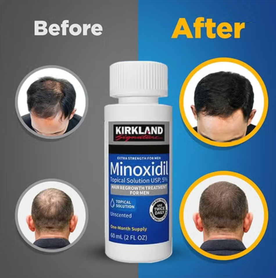 KIRKLAND Minoxidil™ 5% uses the clinically proven active ingredient Minoxidil to help men regrow hair by reactivating dormant follicles and stimulating natural growth. While other products rely on hype, we deliver a trusted, effective formula that actually works.